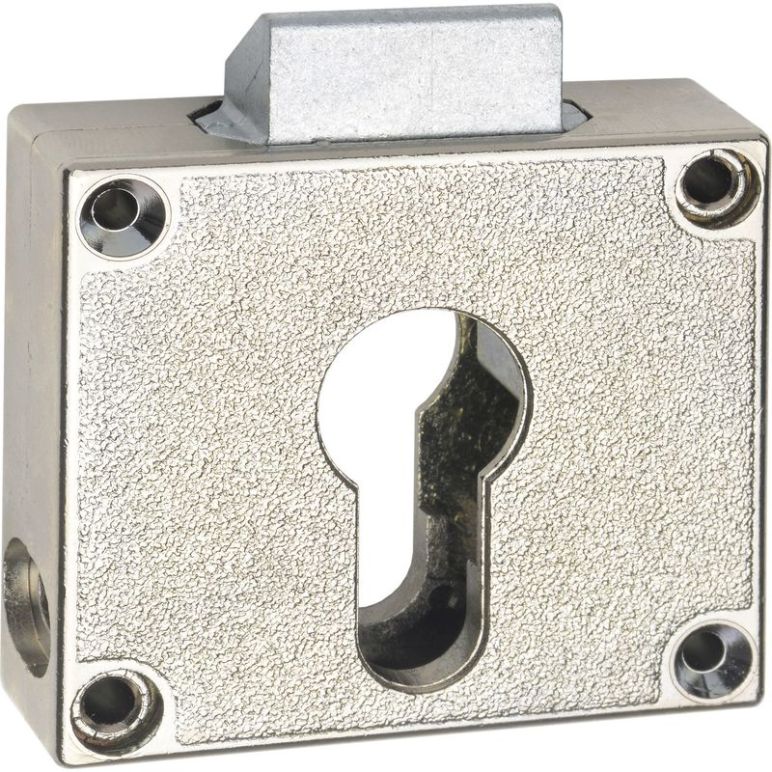 Zylinderbefestigung von der Kastenstirnseite Für Profil-Halbzylinder Schließrichtung nach oben Schwere Ausführung Berechnung der passenden Profil-Halbzylinderlänge (mm) = 8 mm + Türstärke mm Lieferumfang: Schlosskasten, Winkelschließblech, Zylinderbefestigungsschraube M 5 x 30 mm Material: Messing Type: 7449 Dornmaß(mm): 25 Oberfläche: vernickelt Produktart: Möbelschloss Inhaltsangabe (ST): 1
