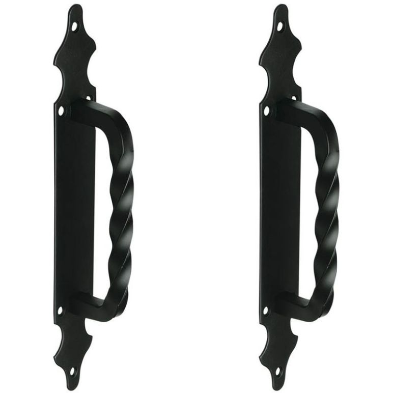 2er Set Stoßgriffe Haustürbeschlag Schmiedeeisen schwarz matt glattes Schild