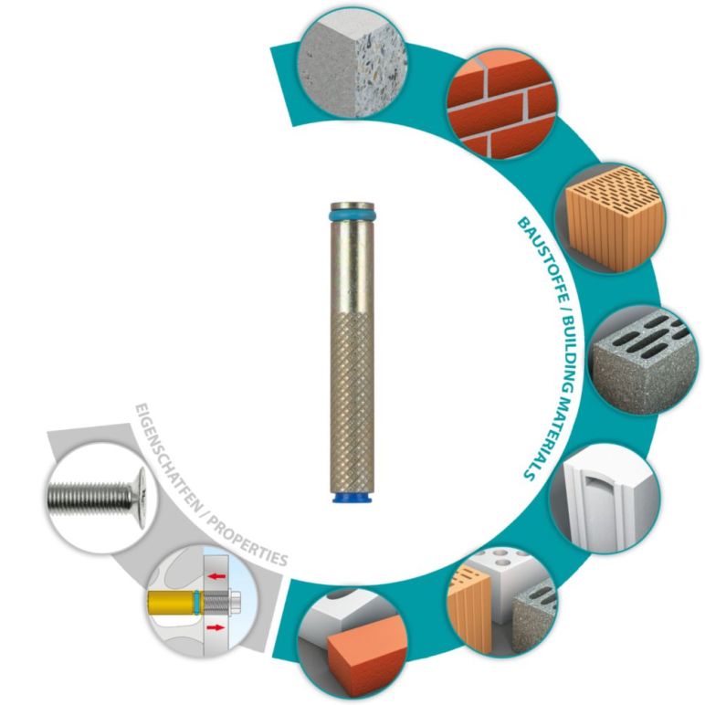• Der Innengewindeanker Liquix Impact ist für handelsübliche metrische Schrauben und Gewindestangen in den Größen M8 und M10 geeignet
