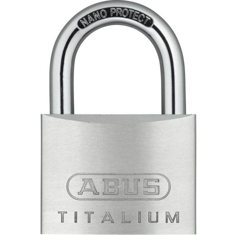 ABUS Vorhängeschloss TITALIUM Serie 64TI/60.verschiedenschließend | Hersteller-Nr.: 56352 | EAN: 4003318563522 | Vorhängeschlösser TITALIUM™ Serie 64TI Spezialstahlbügel mit NANO-Protect-Beschichtung • Ausführung: Schlosskörper aus TITALIUM™ Spezialaluminium - hohe Sicherheit bei geringem GewichtSpezialstahlbügel mit NANO-Protect-Beschichtung für sehr hohen Korrosionsschutzparazentrisches Schlüsselprofil für erhöhten Manipulationsschutzverchromte ZylinderkernePräzisionszylinderdoppelte Bügelverriegelungtulpenförmiger SchlüsselkopfBez.-Nr. 154-160 mit extra hohem Bügel • Vorteil: höchste Stabilität und geringes Gewicht • Lieferung: je Schloss 2 Schlüssel Mit Kunststoffummantelung: Nein Schlosstyp: Vorhängeschloss Bügeldurchmesser: 9.5 mm Werkstoff Bügel: Stahl Gehäusebreite: 60 mm Werkstoff Gehäuse: Titalium® Aluminiumlegierung Lichte Bügelhöhe: 34 mm Mit Korrosionsschutz: Ja Modell: 64TI/60 Farbe: Aluminiumfarben Lichte Bügelweite: 33.5 mm Schließart: Verschiedenschließend