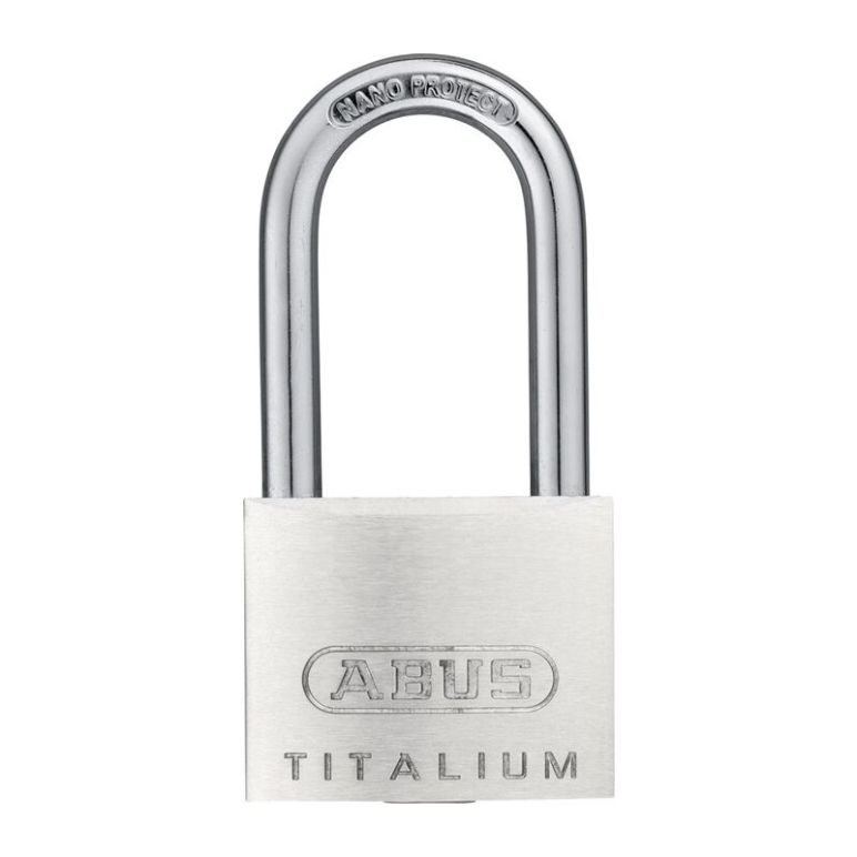 Zylindervorhangschloss 64TI/40HB40 gl Schlosskörper-B.40mm Titalium gl.6411 ABUS Massiver Schlosskörper aus TITALIUM™ Spezialaluminium · ab 3 mm Spezialstahlbügel mit NANO-Protect™ · Beschichtung (kleinere Größen mit gehärtetem Stahlbügel) · ab 3 mm doppelte Bügelverriegelung Weitere technische Eigenschaften: · Ergänzung: mit hohem Bügel