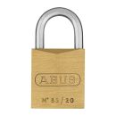 Zylindervorhangschloss 85/20 gl Schlosskörper-B.21mm MS gl.0393 ABUS Messingschloss, korrosionsbeständig und widerstandsfähig durch doppelte Verriegelung (ab 30 mm) sowie Bügel aus gehärtetem Stahl · Präzisions-Stiftzylinder mit Pilzkopfstiften · parazentrisches Schlüsselprofil für erhöhten Manipulationsschutz · automatisch verriegelnd: Verriegelung ohne Schlüssel durch Herunterdrücken des Bügels