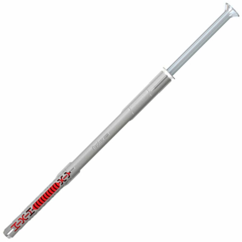 Fischer Langschaftdübel DuoXpand 10x200T, 50 stk. Top-Features: - Clevere Kombination aus Design und Material für materialschonenden Biss im Baustoff. - Spreizelement mit zwei Verankerungstiefen für flexiblen Einsatz. - Zugelassene Mehrfachbefestigung von nichttragenden Systemen in Beton und Mauerwerk - Seitliche Rippen verhindern Mitdrehen im Bohrloch für funktionssichere Montage - Vormontierte Sicherheitsschraube mit Senkkopf Vorteile: - Die abgestimmte Kombination aus Design und Material beißt sich perfekt in alle Baustoffe und ermöglicht den universellen Einsatz. - Der graue Grundkörper aus hochwertigem Nylon bietet starken Halt, während die rote Materialkomponente für Flexibilität und optimales Aufspreizen sorgt. - Die vormontierte Sicherheitsschraube ist perfekt auf den Dübel abgestimmt und sorgt für Zeitersparnis bei der Montage. - Die spezielle Lamellengeometrie verspreizt sich materialschonend im jeweiligen Baustoff. Dies vermeidet Brüche in porösen Baustoffen und ermöglicht