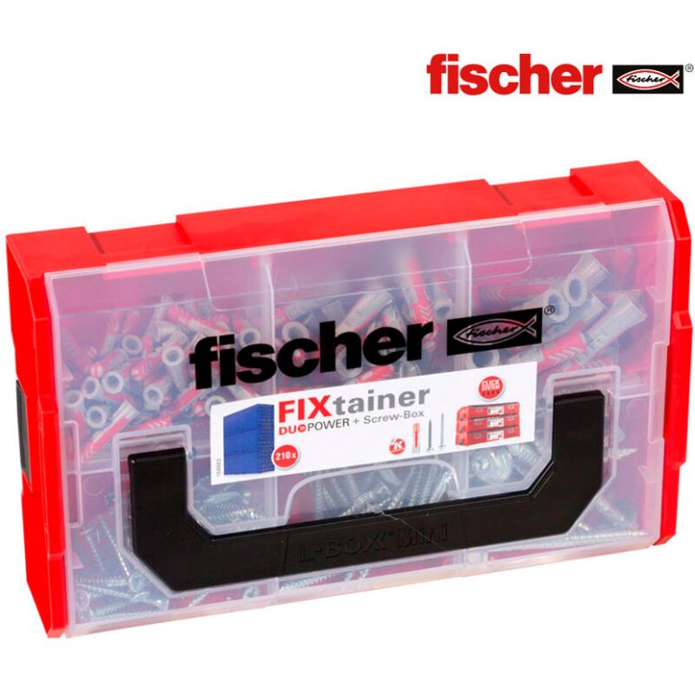 Fixtainer 210 UNI Duopower 6/8/10+Fischer -Schrauben. Zusammensetzung: 60 x Duperower 6 x 30, 30 x Duper 8 x 40, 15 x Duper 10 x 50, 60 x Sz Schrauben 4,5 x 40 ZPF, 30 x SZ Schrauben 5,0 x 60 ZPF, 15 x Sicherheitsschrauben Sechskant uns