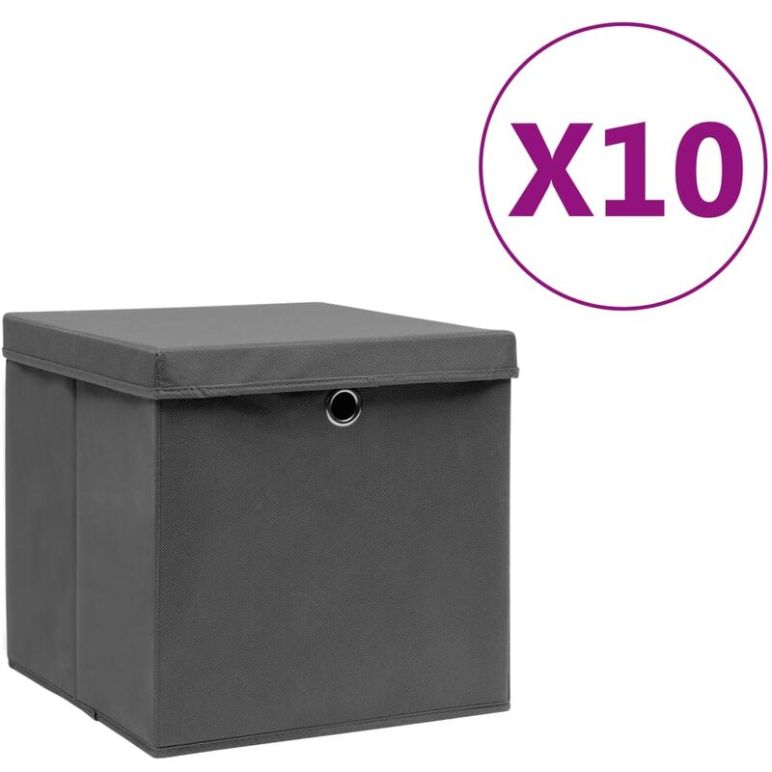 Vidaxl - Aufbewahrungsboxen mit Deckeln 10 Stk. 28x28x28 cm Grau
