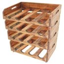 Dieses Set von 4 Weinregalen ist die perfekte Wahl für Weinliebhaber und verleiht jeder Inneneinrichtung einen Hauch rustikalem Charme. Jedes Regal kann bis zu 4 Flaschen halten. Die Weinregale sind aus recyceltem Massivholz gefertigt, die Eigenschaften verschiedener Holzarten wie Mahagoni, Teak, Mango, Akazie etc. finden sich darin wieder. Jedes Möbelstück trägt individuelle Bearbeitungs- und Alterungsspuren und wird so zu einem unverwechselbaren Einzelstück. Die kleinen Unebenheiten, die im Altholz auftauchen können, verleihen diesem Set im Vintage-Look einen authentischen Charakter und erzählen eine ganz eigene Geschichte. Das hierin verarbeitete Holz stammt aus natürlichem Fall- und Bruchholz, Booten, Holzhäusern etc. Die Weinregale in schlichter, jedoch zeitloser Gestaltung lassen sich dank eingebauter Griffe einfach verschieben. Sie können sowohl getrennt als auch gestapelt in Form eines mehrstufigen Weinregals verwendet werden. Das Set wurde mit größtmöglicher Sorgfalt