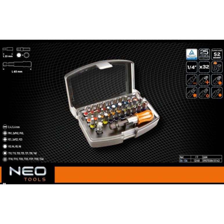 "NEO Tools 32 tlg. Profi Bit-Set 1/4"" 25 Jahre Garantie (06-106)"