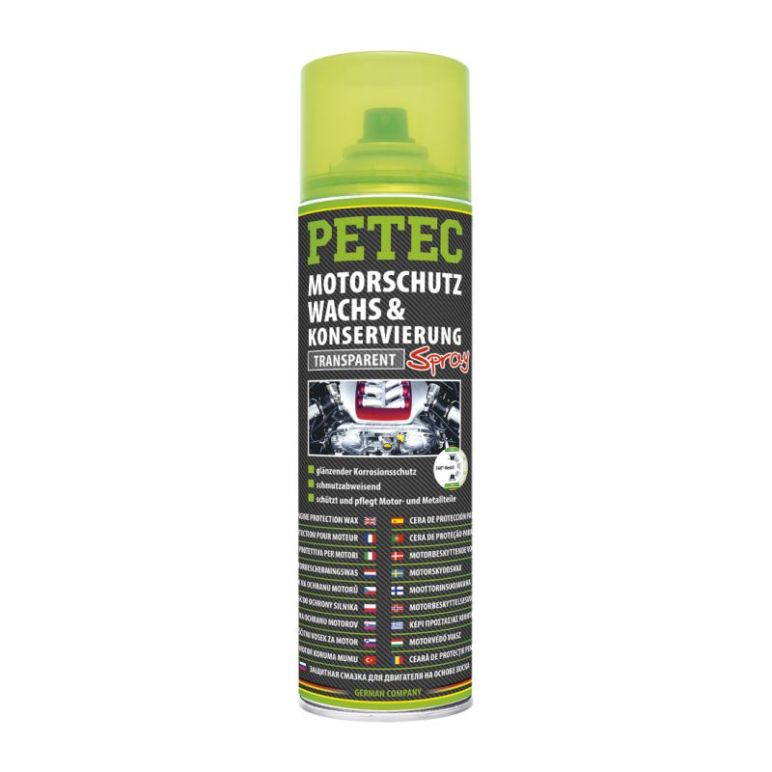 Motorschutzwachsspray transparent Dieser Motorschutz ist eine Hochglanzversiegelung und ein Korrosionsschutzmittel für Motoren und sonstige Teile. Es schützt zuverlässig vor Korrosion, Schmutz, Nässe und Kriechströme. Durch die Nachkonservierung erscheint der Motorraum wie neu. Problemlos durch den Winter mit Petec Motorschutzwachs! Technische Merkmale: Glänzender Korrosionsschutz Schmutzabweisend Schützt und pflegt Motor- und Metallteile Verträglich mit allen Materialien Hervorragend geeignet als Schutz- und Nachkonservierung Alterungs- und witterungsbeständig 500 ml Spraydose Farbe: Transparent Gefahrenhinweise: Enthält: Kohlenwasserstoffe, C7, n-Alkane, iso-Alkane, zyklisch P222: Extrem entzündbares Aerosol. P229: Behälter steht unter Druck, Kann bei Erwärmung bersten H315: Verursacht Hautreizungen. H336: Kann Schläfrigkeit und Benommenheit verursachen H412: Schädlich für Wasserorganismen mit langfristiger Wirkung. P102: Darf nicht in die Hände von Kindern gelangen. P211: Nicht gegen offene Flamme oder andere Zündquelle sprühen. P271: Freisetzung in die Umwelt vermeiden. P302 + P352: Bei Berührung mit der Haut. Mit viel Wasser und Seife waschen. P362 + P364: Kontaminierte Kleidung ausziehen und vor erneutem Tragen waschen. P304 + P340: Bei Einatmen: Die Person an die frische Luft bringen und für ungehinderte Atmung sorgen. P312: Bei Unwohlsein GIFTINFORMATIONSZENTRUM oder Arzt anrufen. P410 + P412: Vor Sonneneinstrahlung schützen und nicht Temperaturen über 50°C/122°F aussetzen. P501: Inhalt/Behälter gemäß lokalen/regionalen/nationalen/internationalen Vorschriften der Entsorgung zuführen. P210: Von Hitze, heißen Oberflächen, Funken, offenen Flammen und anderen Zündquellen fernhalten. Nicht rauchen. P251: Nicht durchstechen oder verbrennen auch nicht nach Gebrauch.