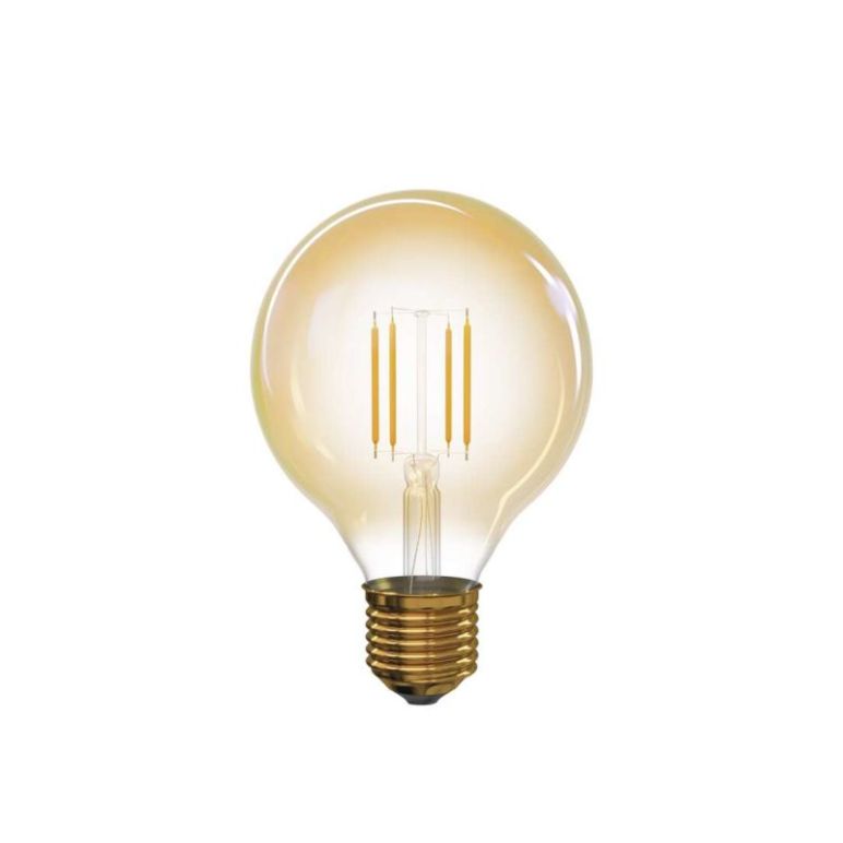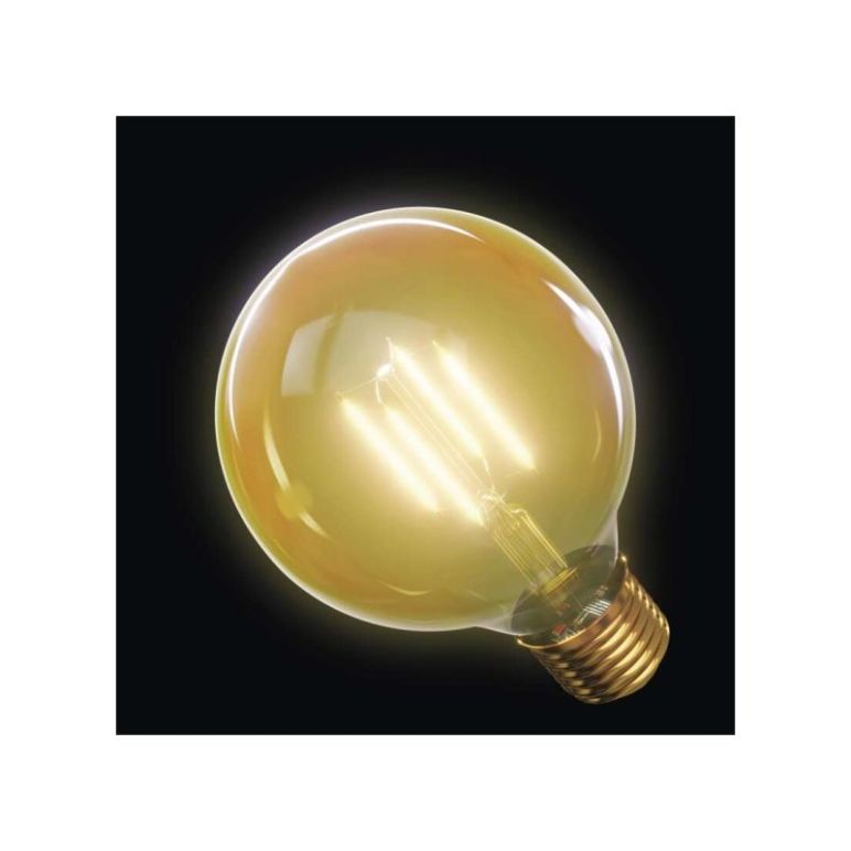 LED-Glühbirne Vintage G95 Filament  Diese LED-Glühbirne Vintage von Emos punktet mit niedrigem Stromverbrauch und ihrer trendigen Filamentoptik. Der extra warmer Ton sorgt für eine angenehme Atmosphäre. Technische Merkmale: Fassung: E27 Farbe: Warmweiß+ Leistung: 4 W Lichtstrom: 470 lm G95 Farbtemperatur: 2.200 Kelvin Spannung: 230 V / 50Hz Abstrahlwinkel: 360° Energieklasse (ab 1.9.21): E Langlebigkeit: 25.000 Stunden Anzahl der Chips: 4 Chip-Typ: COB