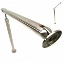 Edelstahl-Handlauf 120 als Innen- und Außenhandlauf, Wandhandlauf, Treppengeländer, Stützhilfe Dieser robuste, winkelverstellbare Edelstahlhandlauf mit einer Höhe von 90 cm passt sich automatisch jedem Treppenwinkel an. Der individuell an den Treppenneigung anpassbare Handlauf aus Edelstahl ist robust, stabil und hält großen Belastungen stand. Dabei ist dieses elegante Geländer modern und zeitlos entworfen und wird direkt mit passenden Rohrabschlusskappen und Rohrstopfen geliefert. Dank des genialen Gelenkmechanismus am Handlaufhalter und am Wandanker kann das Geländer jeder Treppenneigung individuell angepasst werden. Es ist perfekt für den Außen- und Innenbereich geeignet. Dabei wird der Pfostenfußpunkt direkt auf den Boden oder die Stufe montiert und der Handlaufanker an die Wand. Die mitgelieferte Edelstahlrosetten verblendet den Fußpunkte und bieten so einen optisch sauberen Abschluss. Produktvorteile: - robuster, winkelverstellbarer Edelstahlhandlauf, für jede Treppenneigung