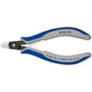 Präzisionszangen für feinste Schneidarbeiten, z. B. in Elektronik und Feinmechanik. Sehr genau geschliffene, scharfe Schneiden mit sehr kleinen Facetten für exakte Schnitte an empfindlichen Elektronik-Bauteilen; auch ohne Facette für bündiges Schneiden. Schneiden zusätzlich induktiv gehärtet, Schneidenhärte ca. 64 HRC. Ca. 20 % weniger Gewicht als konventionelle Elektronikzangen. Geschraubtes Gelenk mit besonders sorgfältig gefertigten Gelenkflächen für gleichmäßige, reibungsarme Bewegung im gesamten Öffnungsbereich. Leichtgängige Doppelfeder für ein sanftes und gleichmäßiges Öffnen. Ergonomisch optimierte Mehrkomponenten-Hüllen. runder Kopf.