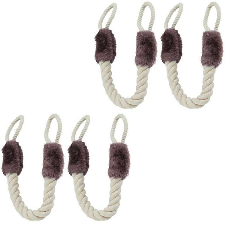 4 x Türkordel Klemmschutz für Türklinken, Baby & Tier Türsicherung, Stoff Türseil, Türklemme, 60 cm, beige/braun