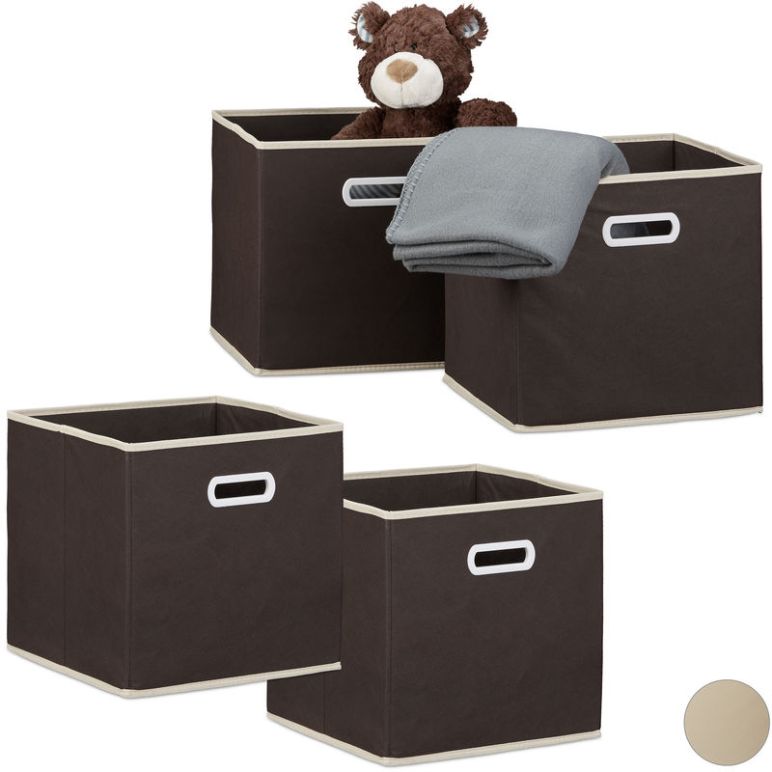 4 x Faltbox im Set, Aufbewahrungsbox aus Stoff, quadratisch hbt ca. 30 x 30 x 30 cm, mit Fingerloch, Regalbox, braun