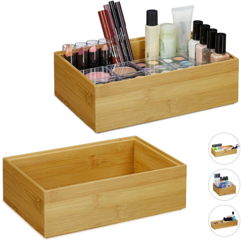 2 x Ordnungsbox Bambus, stapelbar, natürliche Optik, Aufbewahrungsbox Küche, Bad, Dekobox HxBxT: 7 x 23 x 15 cm, natur