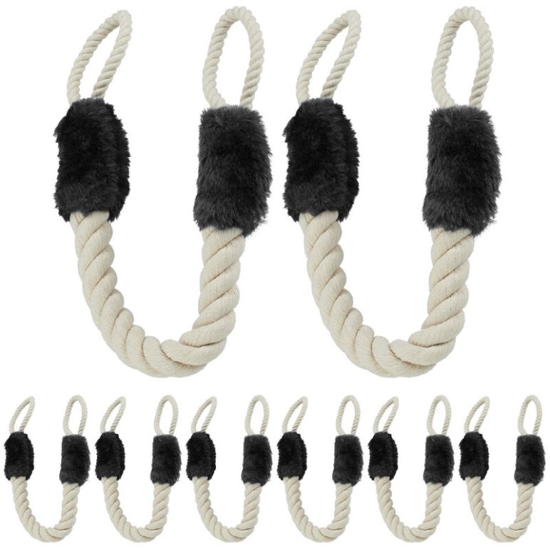 8 x Türkordel Klemmschutz für Türklinken, Baby & Tier Türsicherung, Stoff Türseil, Türklinkenstopper 60cm, beige/schwarz