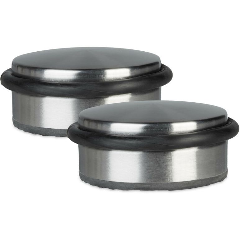 2 x Türstopper aus Edelstahl, Gummiert, Flach, h x b x t: 4,5 x 10 x 10 cm, silber