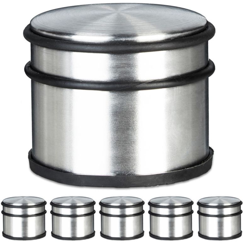 6 x Türstopper hoch, Edelstahl, Rutschfest, Groß, Für schwere Türen, Gummi-Schutz, hbt: ca. 7,5 x 9,5 x 9,5 cm, silber