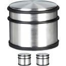 Die Türstopper sind nützliche Helfer für Ihren Haushalt. Sie verhindern das unbeabsichtigte An- und Zuschlagen von Türen. Die schwere Qualität sorgt für einen festen Stand auf allen Böden. An der Unterseite der Türpuffer ist rutschfester Gummi angebracht, der die Standfestigkeit erhöht und das Wegrutschen verhindert. Sie sind auf allen Fußböden einsetzbar. Umlaufende Gummiringe an den Türhaltern verhindern Beschädigungen an Ihren Türen und Möbeln. Für den Einsatz ist keine besondere Montage notwendig. Einfach an der gewünschten Stelle platzieren, und Ihre Türen sind sicher. Dank ihres eleganten Edelstahl-Designs passen sie sich jeder Wohnung an und sind in allen Räumen einsetzbar. Wissenswertes zum Türpuffer - Maße gesamt H x B x T: ca. 7,5 x 9,5 x 9,5 cm - Material: Edelstahl, Gummi - Gewicht: ca. 1,1 kg - 2 umlaufende Gummiringe - Unterseite komplett gummiert Türhalter als praktisches Wohnaccessoire - Schützt Türen, Böden und Wände vor Beschädigungen - Rundum-Schutz dank umlaufenden