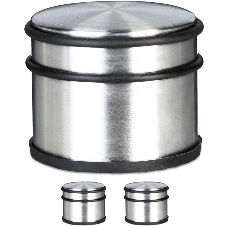 3 x Türstopper hoch, Edelstahl, Rutschfest, Groß, Für schwere Türen, Gummi-Schutz, hbt: ca. 7,5 x 9,5 x 9,5 cm, silber