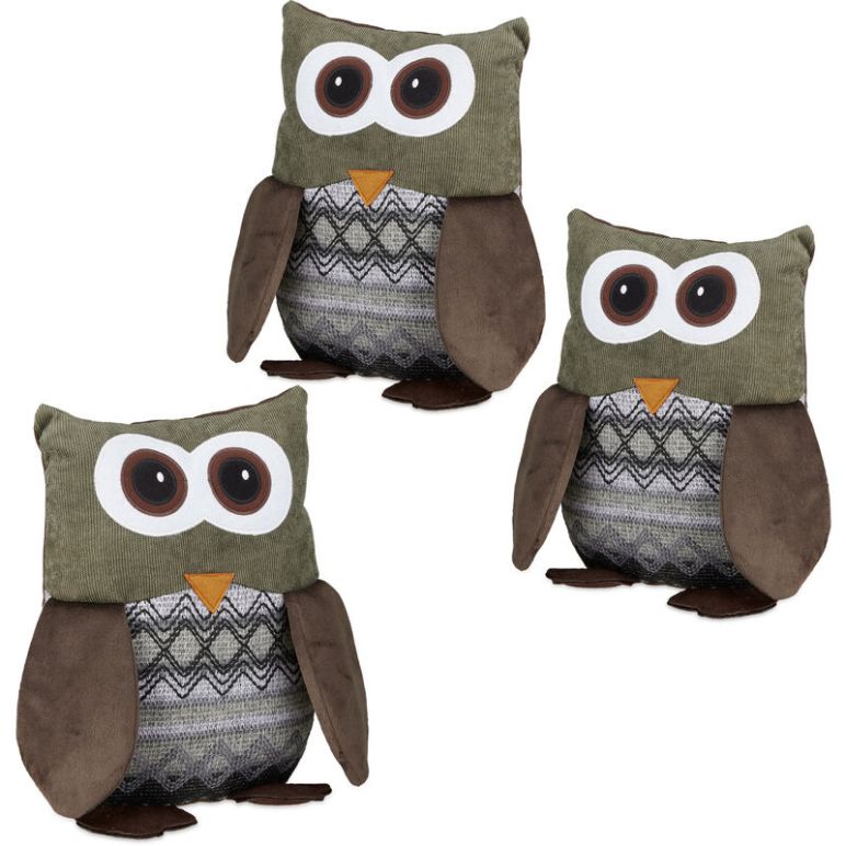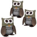 3er Set Türstopper Eule, Türpuffer Stoff, Türsack Boden, Türhalter Kinder, dekorativ, HxBxT: 24 x 14 x 14 cm, braun