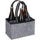 Relaxdays 6er Flaschenträger, Filz, Männerhandtasche Bier, Stoff Flaschentasche für 0,5 l Flaschen, 15x24x15cm, grau