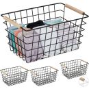 4 x Drahtkorb, Holzgriffe, rechteckig, Gitter Design, Kleidung, Accessoires, Metallkorb, hbt: 16x31x21 cm, schwarz