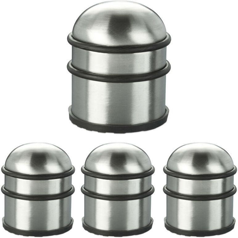 4 x Türstopper, für Türen & Fenster, aus Edelstahl & Gummi, hoch & rund, Innenbereich, Bodenpuffer, ∅ 7 cm, silber