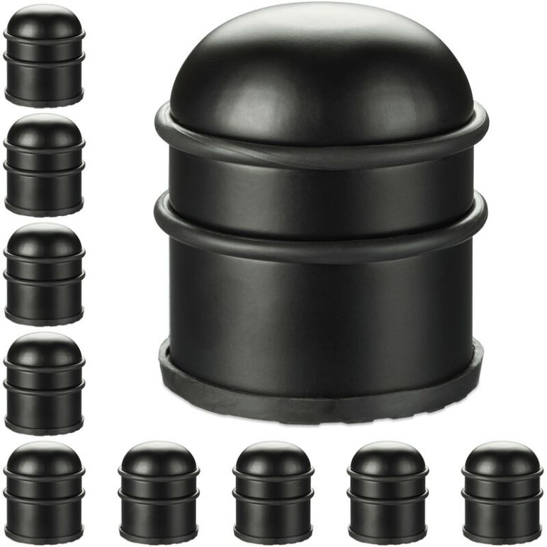 10 x Türstopper, für Türen & Fenster, Türbremse aus Edelstahl & Gummi, hoch & rund, innen, Bodenpuffer, ∅ 7 cm, schwarz