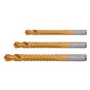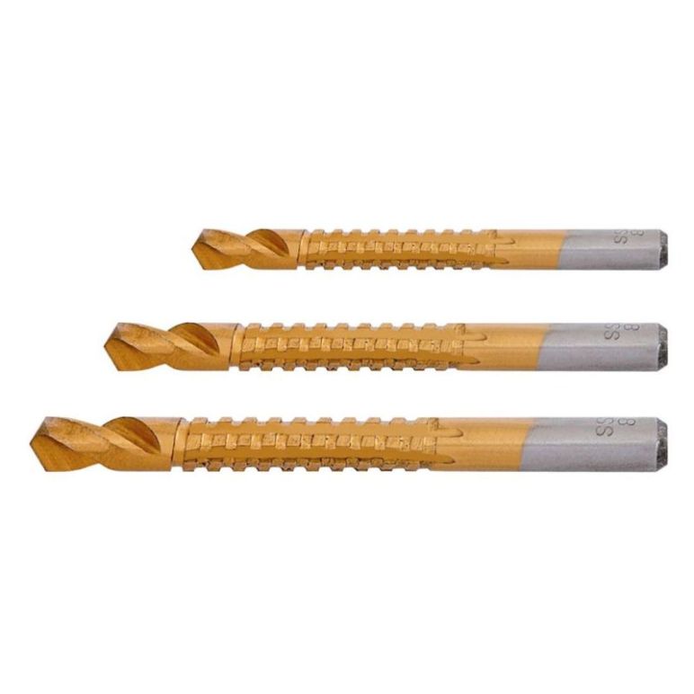 3 Fräsbohrer im Set Diese Bohrer sind aus Schnellarbeitsstahl hergestellt und mit Titannitrid beschichtet. Durch die Möglichkeit unregelmäßige Löcher bohren zu können eignen sich die Fräsbohrer perfekt, um zwei Arbeitsschritte in einem zu kombinieren - Bohren und Fräsen gleichzeigig. Technische Merkmale: Hergestellt aus Schnellarbeitsstahl Beschichtet mit Titannitrid (TiN) 3-teilig Größen: 5, 6 und 8 mm Sägebohrer