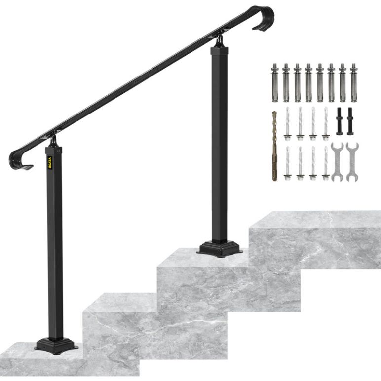 1-3 Stufen Handlauf aus Schmiedeeisen Unser Treppengeländer für den Außenbereich aus Beton bietet zusätzlichen Schutz für ältere Menschen, Kinder und Behinderte, die Schwierigkeiten bei der Benutzung von Treppen haben. Das höhenverstellbare Design ermöglicht es dem Außengeländer für Treppe mit 1 Stufe zu passen, um Ihre verschiedenen Bedürfnisse zu erfüllen. Dank des robusten schmiedeeisernen Materials und der pulverbeschichteten Oberfläche ist das Geländer rostfrei und leicht zu reinigen. Dieser Metallhandlauf für Außentreppen ist ideal für Gärten, Wohngebäude, Veranden, Hotels usw. Einstellbar für 1-3 Stufen Premium Material Einfach zu montieren Stilvolles Aussehen Eigenschaften & Details Flexibel für 1-3 Stufen: Maximale Höhe für Stufen: 17,7 Zoll / 45 cm, Abstand zwischen den Pfosten: 27 Zoll / 68,5 cm, Höhe des Pfostes: 37,8 Zoll / 96 cm. Dank der flexiblen Höhe passt unser schmiedeeisernes Geländer für 1-3 Stufen zu den verschiedenen Größen. Es ist perfekt, um Menschen zu