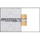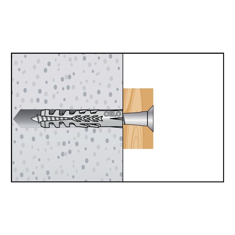 Hohe Auszugswerte werden aufgrund der starken Spreizfähigkeit mit dem CELO Normaldübel F erreicht. Der Nylondübel ist in einem großen Sortiment in den Durchmessergrößen 4-20mm verfügbar. Er ist ideal geeignet für Vollbaustoffe · erreicht aber auch gute Lastwerte in Lochsteinen und Porenbeton. Durch seine sehr gute Schraubenführung kann die Schraube nicht seitlich aus dem Dübel austreten. Die ausgeprägten Flügel verhindern wirksam das Mitdrehen im Bohrloch. Zudem verhindert die stabile Formgebung das Abknicken beim Einschlagen.Weitere technische Eigenschaften:· Temperaturbereich: -40-80°C· Anwendungsbeispiele: Lampen, Elektroschalter, Wandregale, Hängeschränke, Briefkästen, Gardinenschienen, Sanitärbefestigungen, Handläufe, TV-Halterungen, Bilder· Marketingclaim: Der Klassiker für Vollbaustoffe· Materialeignung: Beton, Naturstein, Vollziegel, Kalksand-Vollstein, Vollstein aus Leichtbeton, Porenbeton, Gips-Wandbauplatten· Vorteile: Hohe Auszugswerte aufgrund starker Spreizfähigkeit (vierseitige Spreizung im mittleren Bereich), Ideal geeignet für Vollbaustoffe, erreicht aber auch gute Lastwerte in Lochsteinen und Porenbeton, Sehr gute Schraubenführung, d. h. die Schraube kann nicht seitlich aus dem Dübel austreten, Verfügbar in einem großen Sortiment in den Durchmessergrößen 4-20mm, Hohe Verdrehsicherheit durch ausgeprägte Flügel, Stabile Formgebung verhindert Abknicken beim Einschlagen, Sehr gute Schraubenführung, d. h. die Schraube kann nicht aus dem Dübel seitlich austreten, Hohe Verdrehsicherheit, Gute Lastwerte auch in Lochsteinen und Porenbeton