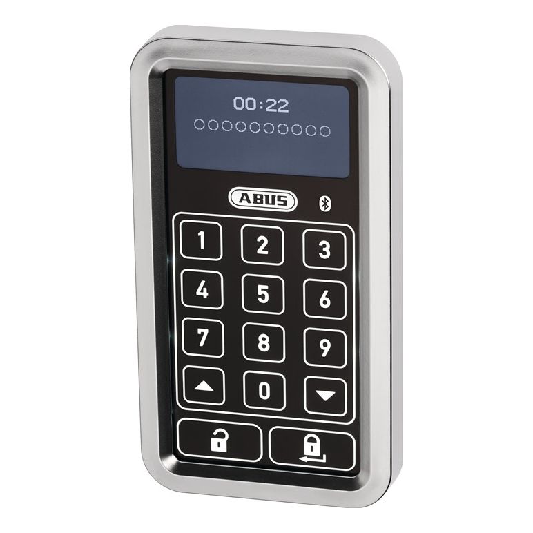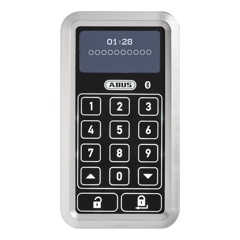 zur Steuerung des HomeTec Pro Bluetooth-Türschlossantriebes · Ver-/Entriegeln und Öffnen der Tür per Codeeingabe · ermöglicht die Vergabe von Zutrittsberechtigungen · hinterleuchtetes Display mit hochwertiger Touch-Oberfläche · einfache, flexible und kabellose Montage · maximale Sicherheit durch AES-128-Bit Verschlüsselung und ABUS Keycard · Bluetooth-Funkstandard · Spannungsversorgung per Batterie