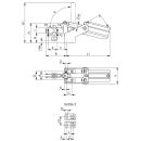 mit horizontalem Zylinderanbau · ausgerüstet mit Pneumatikzylinder, doppeltwirkend · mit Magnetkolben für Endlagenabfrage · mit Drosselbohrungen für gedämpfte Geschwindigkeit · Spanner verzinkt und passiviert · Niete aus nicht rostendem Stahl, die bei den Größen 2 bis 4 in einsatzgehärteten Lagerbuchsen laufen · Lagerstellen gefettetWeitere technische Eigenschaften:· A: 6mm· C: 20mm· D: 5,5mm· a: 91,5°· F4: 1kN· Spannhöhe: -1 - 7 mm· Kolben-Ø: 25mm· Andrückschraube: M6 x 35 mm· G: 27mm· HW min.: -1mm· L1: 145mm· HW max.: 7mm· H1: 104mm· L: 12,5mm· I: 12mm· F: 11mm· B: 51,5mm· Ø W: 12mm· Eigenschaft: doppeltwirkend· K: 6mm· R: M5· V: 54,5mm· E: 25mm· H: 26mm· F3: 0,7kN· Druckluftanschluss: M5· N: 55mm
