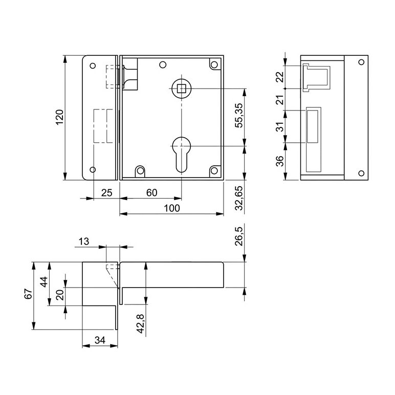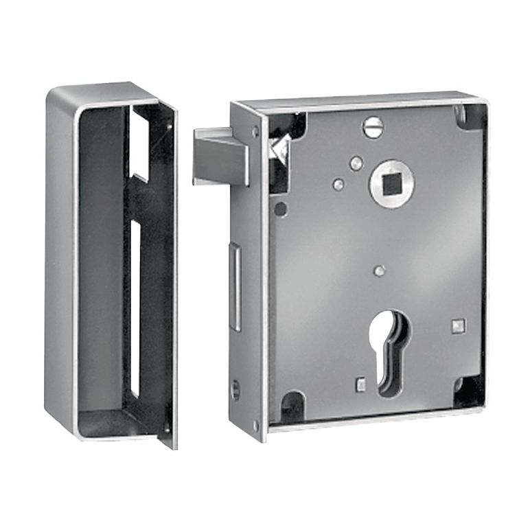 schwere Ausführung · einwärts · verzinkt · schießende Falle · Falle nicht umdrehbar · gerichtet für 17,5 Überschlag · Dornmaß 60 mm · Nuss 8 mm · Kastenbreite 100 mm · 2-tourig · Schließung: PZW, mit Wechsel · BB mit Nachrüstsatz · Zubehör:· SchließkappeWeitere technische Eigenschaften:· Oberfläche: verzinkt· Nuss: 8mm· Material: Stahl
