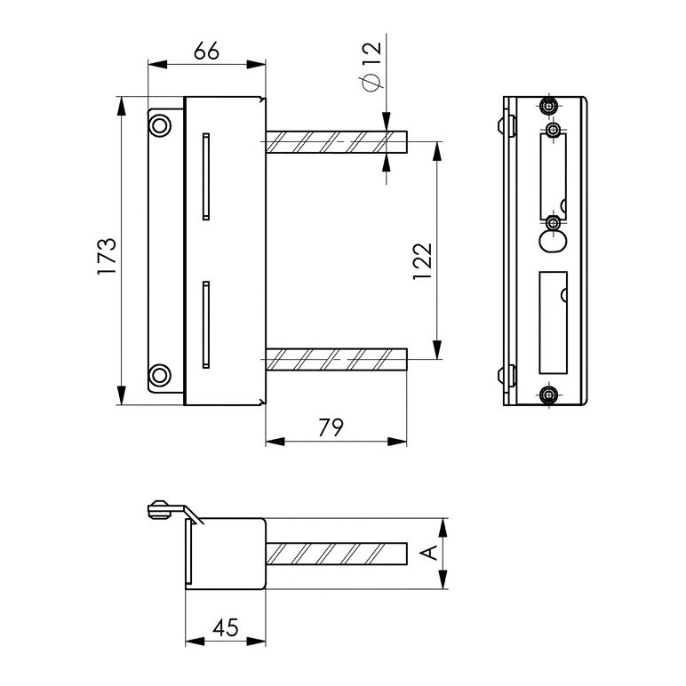 verzinkt · für Bohrbefestigung · für elektrischen Türöffner vorgerichtet · links und rechts verwendbar · inkl. verzinktem Schließblech · auch für Kastenbreite 30 mm auf Anfrage lieferbarWeitere technische Eigenschaften:· Befestigung: zum Anschrauben· passend für: E-Öffner· Maß A: 40mm