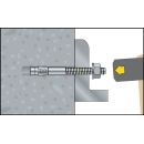 Der CELO Blitzanker BA plus ist der Standardanker für Schwerlastbefestigungen in Beton. Der BA plus ist zugelassen für vielfältigste Montagen in ungerissenem Beton in den Durchmessern M6 - M20. Der abgerundete Spreizkonus vereinfacht das Setzen des Dübels. Die Markierung der Setztiefe erspart das Abmessen bei der Vorsteckmontage. Alle Größen des Blitzankers BA plus haben ein langes Gewinde für eine höhere Anwendungsflexibilität. Eine gut lesbare Prägung des Ankertyps (Typ · Durchmesser · Länge · Klemmdicke) verhindert eine Verwechslung auf der Baustelle. Der BA plus erreicht große Härte und Präzision durch Kaltumformung des Bolzens und des Gewindes.Weitere technische Eigenschaften:· ETA Zulassung: ETA-Zulassung, Option 7· Antrieb: SW 19· Anwendungsbeispiele: Stahlstützen, Stahlträger, Geländer, Fassadenunterkonstruktionen, Maschinen, Tore, Rohrleitungen, Kabeltrassen, Lagerregale· Beschichtung: Galvanisch verzinkt· Marketingclaim: Der Standardanker für die Schnellmontage in Beton· Materialeignung: Beton, Dichter Naturstein· Stück x: 20· Verpackungsart: Box· Vorteile: Geeignet für die Schnellmontage in ungerissenem Beton und bedingt in Naturstein (bis M8), Großes Sortiment für den Holzbau mit großer Scheibe nach DIN 440 verfügbar, Setztiefenmarkierung als Montagehilfe, Langes Gewinde für mehr Flexibilität, Geeignet für die Schnellmontage in ungerissenem Beton und bedingt in Naturstein