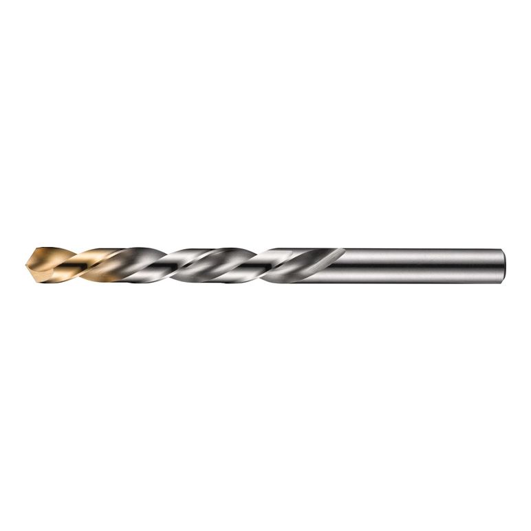 Spiralbohrer Bohrer mit Zylinderschaft · Durchmesser 10.2mm mit einer Gesamtlänge von 133mm und einer Schneidenlänge von 87mm gemäß DIN 338 Standard mit 118° modifizierter Kreuzanschliff · HSS mit TiN-Spitzen-Beschichtung für 4xD Bohrungen ohne Zentrierung in StahlWeitere technische Eigenschaften:· Schneidrichtung: Rechts· Vorschub in Stahl bis 800 N: 0,17mm/U· Qualität: profilgeschliffen· Nenn-Ø-Toleranz: h8· Spannutlänge: 87mm· Baulänge: Kurz