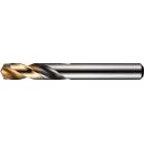 Kurzbohrer Bohrer mit Zylinderschaft · Durchmesser 4mm mit einer Gesamtlänge von 55mm und einer Schneidenlänge von 22mm gemäß DIN/ANSI Standard mit 135° Kreuzanschliff · HSS mit TiN-Spitzen-Beschichtung für 2.5xD Bohrungen ohne Zentrierung in Stahl und GussWeitere technische Eigenschaften:· Schneidrichtung: Rechts· Vorschub in Stahl bis 800 N: 0,12mm/U· Qualität: profilgeschliffen· Nenn-Ø-Toleranz: h8· Spannutlänge: 22mm· Baulänge: Extra kurz