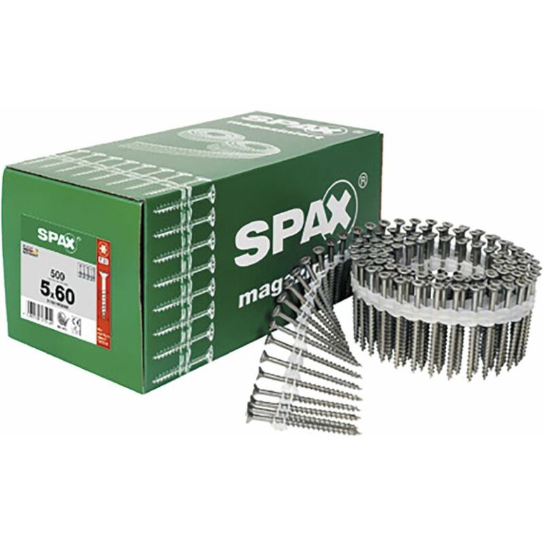 Magaziniert – Coil-System Mit 4CUT-Spitze, MULTI-Kopf (Fräs- und Bremsrippen), magaziniert. Im Coil-System für Magazinschrauber. Geeignet für die schnelle Verarbeitung an großflächigen Holzwänden, wie z.B. Decken und Böden im Innen- und Außenbereich. Marke: SPAX d1(mm): 4 Material: Stahl Kopfform: Senkkopf Antrieb: TX 20 Größe(mm): 4.0x 50 Form: TG Oberfläche: Wirox-Silber L(mm): 50 d2 max.(mm): 8 k max.(mm): 2,4 L1(mm): 32 Ausführung: 200 Stück pro Gurt Inhaltsangabe (ST): 200