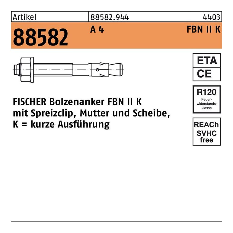 Bolzenanker r 88582 fbn ii 12/ 5K a 4 Ohne Oberflächenangabe