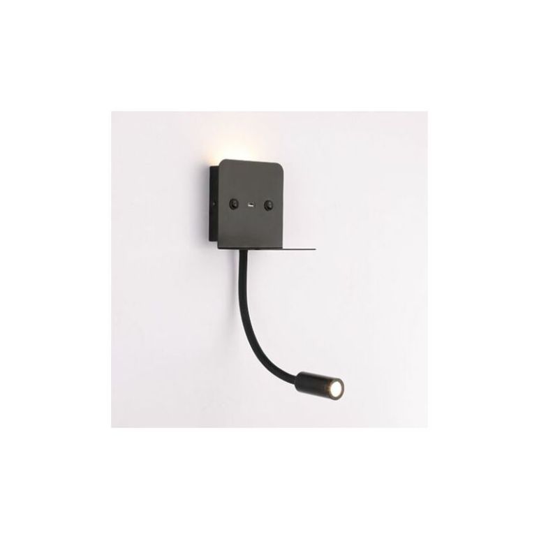 3W 'Slange' LED-Wandleuchte + Leselicht mit USB-Anschluss | Schwarz Schwarz