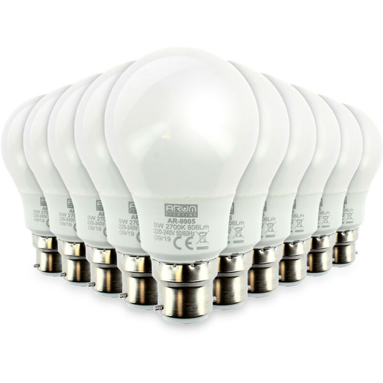 Lot von 10 Birnen led B22 9W Äq. 60W 806lm | Farbtemperatur: Warmweiß 2700K