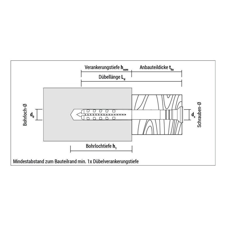 Für die schnelle Befestigung von Rahmen · Latten · Profilen · Folien · Elektroschellen etc. ist der CELO Nageldübel NP bestens geeignet. Die exakte Abstimmung zwischen Dübel und Nagelschraube ergibt optimale Spreizwirkung und damit hohe Haltewerte. Durch eine effektive Einschlagsperre wird ein vorzeitiges Spreizen des Dübels beim Einschlagen verhindert. Alle Nagelschrauben haben PZ-Antrieb · d.h. es ist eine Schraubmontage und -demontage möglich. Auf Grund der ringförmigen Erhöhung auf dem Nagelschraubenkopf wird dieser beim Einschlagen geschützt.Weitere technische Eigenschaften:· Typ: NP 8-135 SB· Antrieb: PZ3· Anwendungsbeispiele: Wandanschluss, Putzprofile, U-Profile, Sockelleisten, Folien, Bleche, Kanthölzer, Rohrschellen, Lochbänder· Beschichtung: Galvanisch verzinkt· Dübelausführung: Senkbund· Marketingclaim: Nageldübel für die schnelle Montage in vielen Branchen· Materialeignung: Beton, Vollziegel, Kalksand-Vollstein, Vollstein aus Leichtbeton, Naturstein, Hochlochziegel HLz, Kalksand-Lochstein KLS, Porenbeton· Stück x: 50· Verpackungsart: Box· Vorteile: Zeitsparende Verarbeitung durch die vormontierte Nagelschraube, Für die schnelle Befestigung von Rahmen, Latten, Profilen, Folien, Elektroschellen etc., Die exakte Abstimmung zwischen Dübel und Nagelschraube ergibt optimale ­Spreizwirkung und damit hohe Haltewerte, Effektive Einschlagsperre verhindert vorzeitiges Spreizen, Schutz des Nagelschraubenkopfes beim Einschlagen durch ringförmige Erhöhung, Alle Nagelschrauben haben PZ-Antrieb, d. h. alternativ auch Schraubmontage und -demontage möglich, Geeignet für die Durchsteckmontage