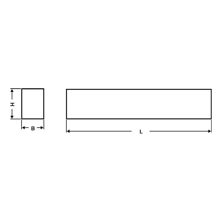 HSS-EW9Co10 · DIN 4964 · Form D: rechteckig · gehärtet, angelassen und fertig geschliffen · Enden gerade und ungeschliffen · Härte 65-69 HRC · Querschnitts-Toleranz: h13Längentoleranz: +/- 2 mmWeitere technische Eigenschaften:· Länge L: 100mm· B: 8mm· H: 4mm