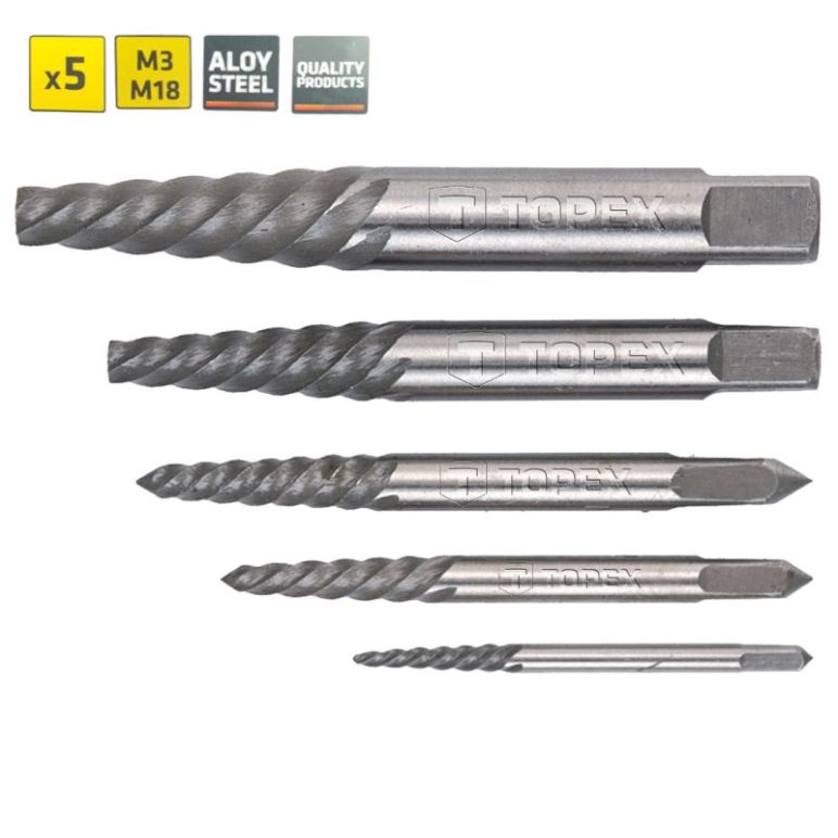 "Mit diesem 5 tlg. Schraubenausdrehersatz entfernen Sie mühelos gebrochene Schrauben, Stehbolzen, Muttern, u.v.m. Durch die praktische Kunststoffbox können die einzelnen Teile mühelos verstaut werden. Material: Stahl Legierung inkl. praktischer Kunststoffbox Gewicht: 0,128 kg passend für folgende Maße: 1/8"" - 1/4"" (3-6mm) 1/4"" - 5/16"" (6-8mm) 5/16"" - 7/16"" (11-14mm) 7/16"" - 9/16"" (11-14mm) 9/16"" - 3/4"" (14-18mm)"