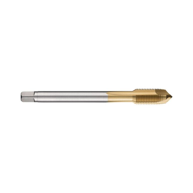 Spiralpunkt Gewindebohrer · Anschnittform B mit 3.5-5xP Gewindeanschnitt · ISO-Metrisches Feingewinde M16 mit 1.50 mm Steigung und 6H Toleranzklasse · Abmessungen nach DIN 374 Standard mit 12.0mm Schaft und 9.0mm Vierkantantrieb · HSSE-PM mit TiN Beschichtung 2.5xD Durchgangsgewinde in Baustahl · Kohlenstoffstahl und legierter · Ferritischer · Martensitischer und Austenitischer Edelstahl und Reinaluminium oder AluminiumgussWeitere technische Eigenschaften:· Schneidrichtung: Rechts· Schaft-Ø: 12· Einspannlänge - Metrisch (LSC): 12· Schaft: Zylindrischer Schaft mit Vierkant