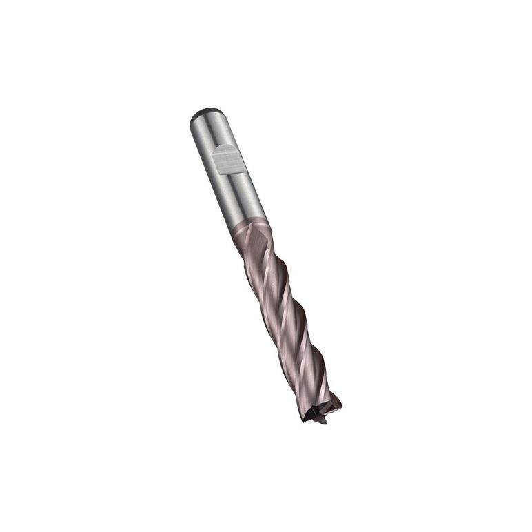Langer schaftfräser mit 4 Schneiden · Durchmesser 18mm mit 63mm Schnittlänge · 123mm Gesamtlänge und 74.5mm erreichbare Lämge mit Halsfreischliff · gemäß DIN 844 L Standard mit einem 16mm Weldonschaft · HSSE-PM mit TiCN Beschichtung · 30° Helix und 12° Spanwinkel zum Schulterfräsen und Nutfräsen in Baustahl · Kohlenstoffstahl und legierter 0 · Gusseisen · Kupfer oder Kupferlegierungen und Titan oder TitanlegierungenWeitere technische Eigenschaften:· Schafttoleranz: h6· Drallwinkel: 30