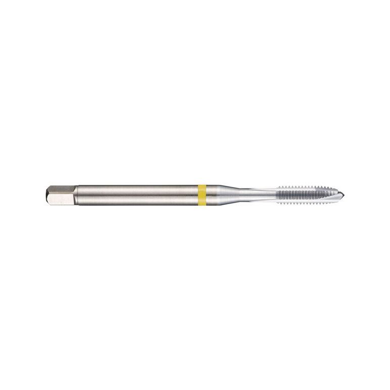 Spiralpunkt Gewindebohrer Yellow Shark · Anschnittform B mit 3.5-5xP Gewindeanschnitt · ISO-Metrisches Gewinde M4 mit 0.70 mm Steigung und 6H Toleranzklasse · Abmessungen nach DIN 371 Standard mit 4.5mm Schaft und 3.4mm Vierkantantrieb · HSSE-PM mit Glanzchrom-Oberfläche 2.5xD Durchgangsgewinde in Baustahl und Kohlenstoffstahl und Kupfer oder KupferlegierungenWeitere technische Eigenschaften:· Schneidrichtung: Rechts· Schaft-Ø: 4.5· Einspannlänge - Metrisch (LSC): 6· Schaft: Zylindrischer Schaft mit Vierkant