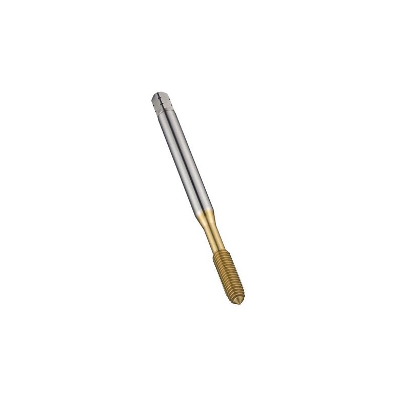 Gewindeformer · Anschnittform C mit 2-3xP Gewindeanschnitt · ISO-Metrisches Gewinde M1.6 mit 0.35 mm Steigung und 6HX Toleranzklasse · Abmessungen nach DIN 2174 Standard mit 2.5mm Schaft und 2.1mm Vierkantantrieb · HSSE-Co mit TiN Beschichtung 3xD Durchgangs- und Sacklochgewinde in Baustahl · Kohlenstoffstahl und legierter · Ferritischer · Martensitischer und Austenitischer Edelstahl und Reinaluminium oder AluminiumgussWeitere technische Eigenschaften:· Gewindelänge: 8mm· Schaft-Ø: 2.5