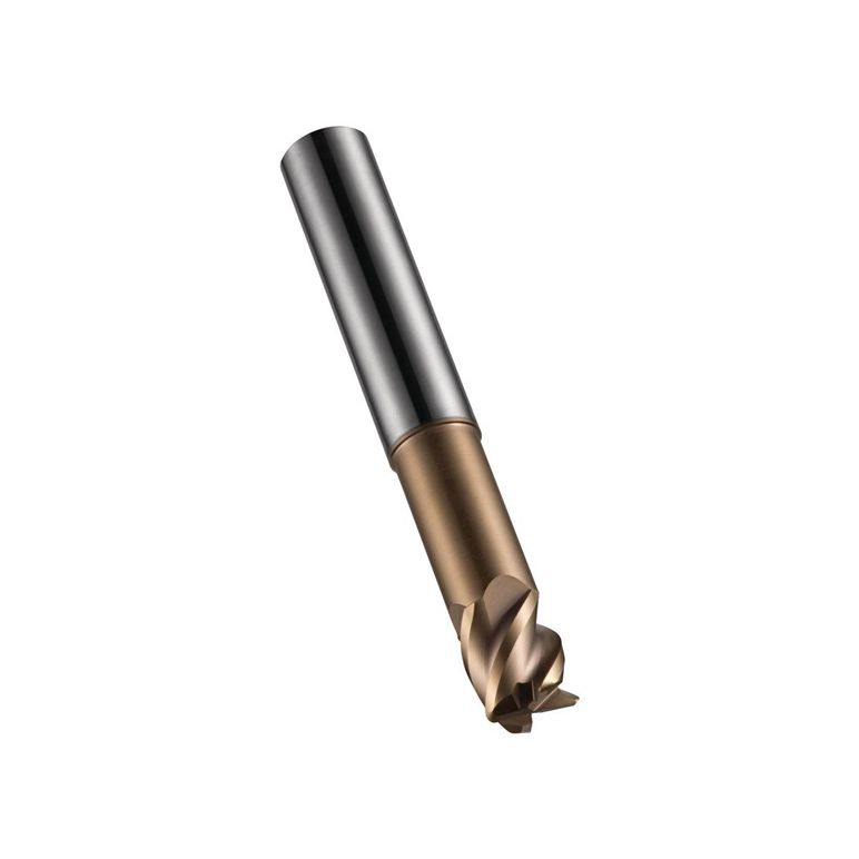 Extra kurzer radiusfräser mit 4 Schneiden · Durchmesser 8mm mit 9mm Schnittlänge · 64mm Gesamtlänge · 26mm erreichbare Lämge mit Halsfreischliff und 1mm Eckenradius · gemäß DORMER Standard mit einem 8mm Zylinderschaft · VHM mit TiSiN Beschichtung · 45° Helix und -10° Spanwinkel zum Schulterfräsen · Tauchfräsen · progressiven Eintauchfräsen · Rampenfräsen und Helikalfräsen in gehärtete MaterialienWeitere technische Eigenschaften:· Schafttoleranz: h6· Drallwinkel: 45